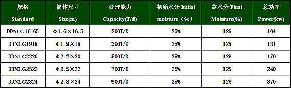 礦泥烘干機技術參數