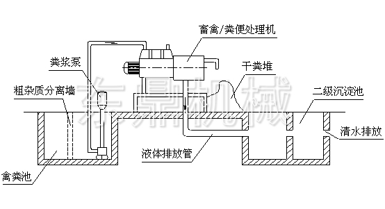 用設(shè)備配套的無堵塞液下泵將牛糞水抽送至牛糞固液分離機內(nèi),再由絞龍將牛糞水逐漸推向機器的前方,同時不斷提高機器前緣的壓力,迫使物料中的水分在邊壓帶 濾的作用下擠出網(wǎng)篩,流出排水管。牛糞固液分離機的工作是連續(xù)進(jìn)行的,其牛糞水不斷的提升至牛糞固液分離機體內(nèi),前緣的壓力不斷增大,當(dāng)大到一定程度時, 就將出料口頂開并擠出擠壓口,達(dá)到擠壓出料的目的。為了掌握出料的速度與含水量, 可以調(diào)節(jié)主機下方的配重塊,以達(dá)到適當(dāng)?shù)某隽蠣顟B(tài)。如果抽入牛糞水過多,會經(jīng)溢液管排到原牛糞水池,經(jīng)螺旋擠壓過濾分離出的牛糞廢水可直接派送至沼氣 池發(fā)酵沼氣或排送至其廢水沉淀池等。